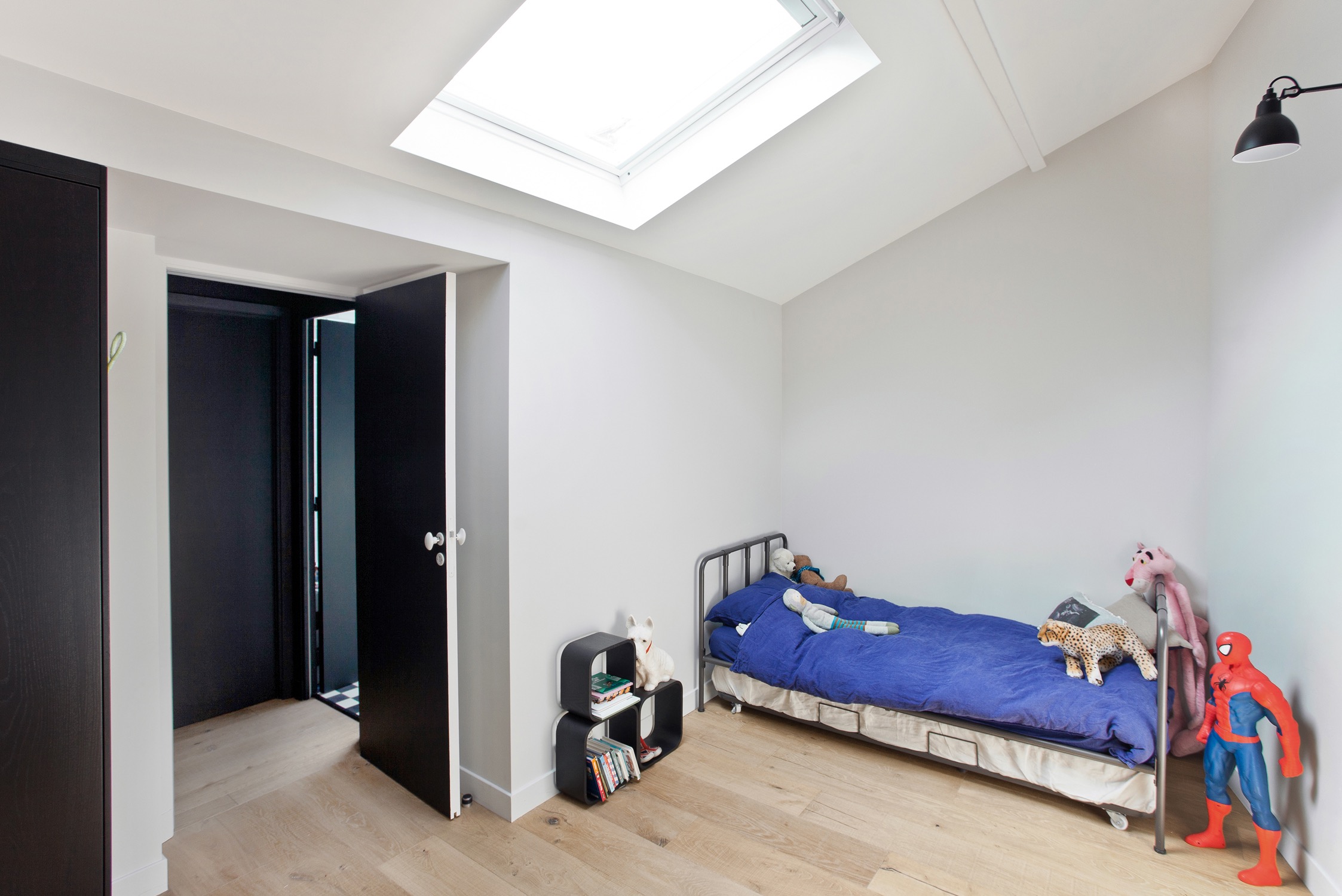 Pour les chambres des enfants, nos collaborateurs ont fabriqué des dressings sur mesure et ont installé des puits de lumière Velux pour apporter une luminosité extérieure.